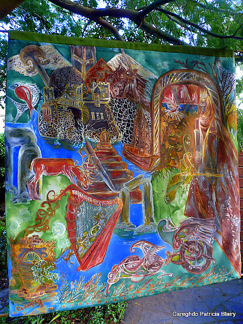 Oeuvre Celtique sur soie Habotai. 100 cm x 100 cm